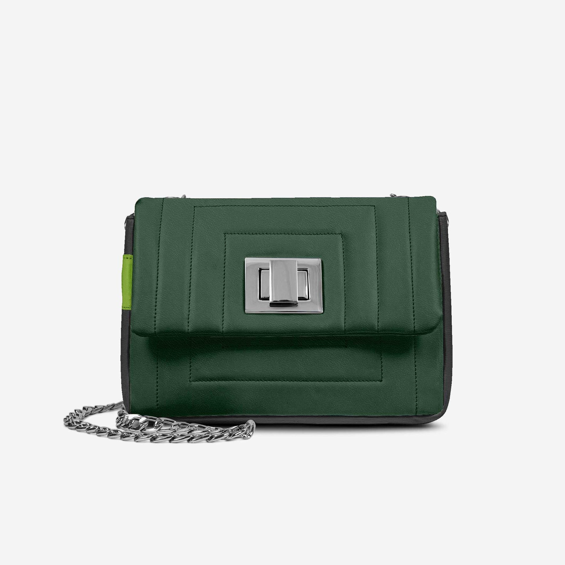 Unveil sophistication with this luxe elegance bag featuring distinctive stitching and a metal clasp on the front flap. The logo is placed on the side for maximum visibility, and the bag comes with a long metal shoulder strap.