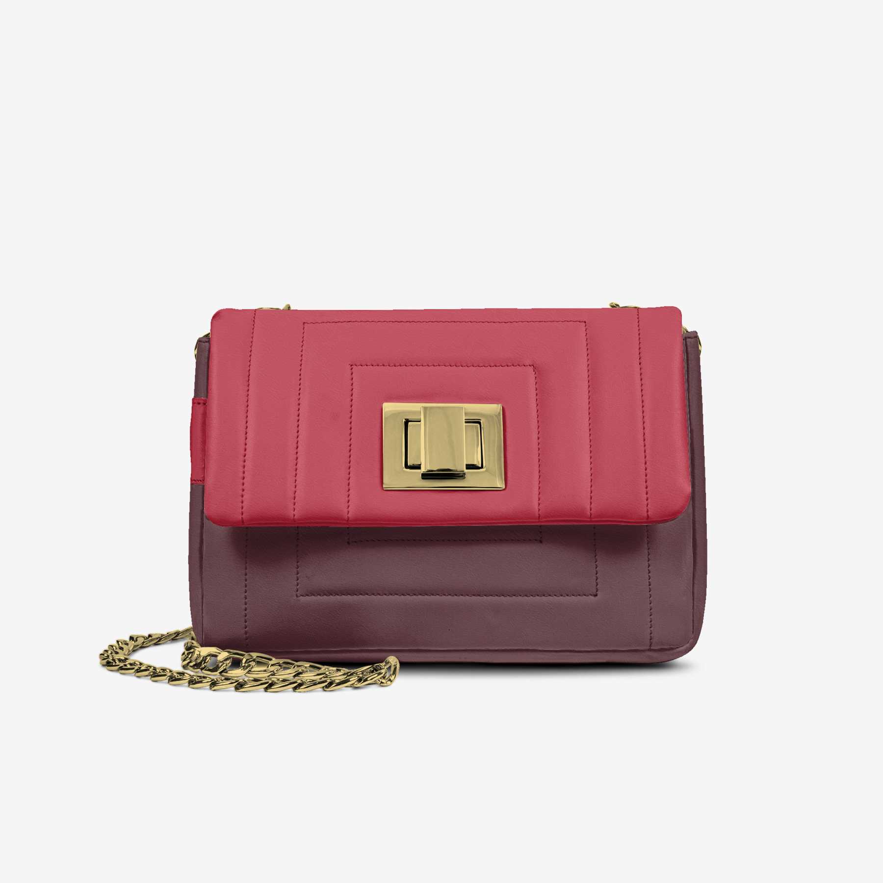 Unveil sophistication with this luxe elegance bag featuring distinctive stitching and a metal clasp on the front flap. The logo is placed on the side for maximum visibility, and the bag comes with a long metal shoulder strap.